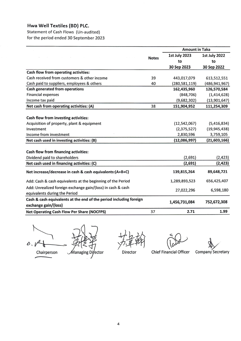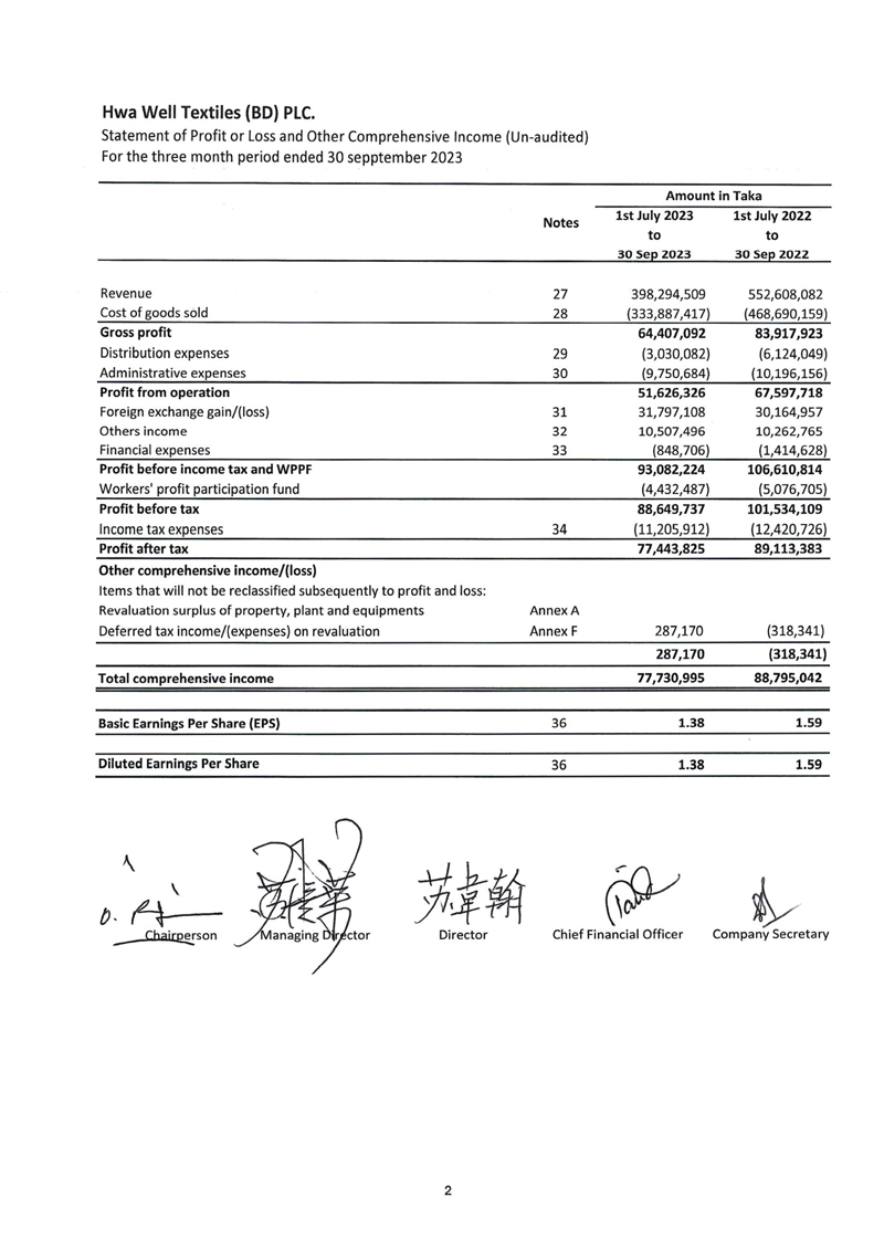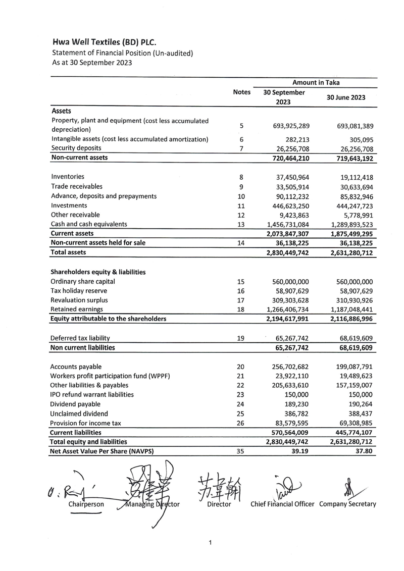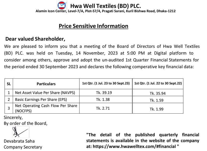 Price Sensitive Information of Hwa Well Textiles (BD) PLC