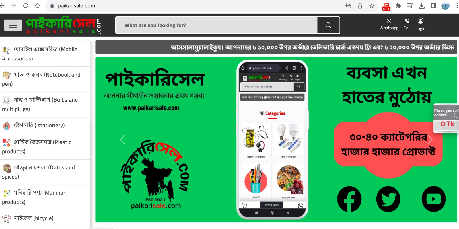 এখন থেকে দোকানে বসেই কিন্তু পারবেন পাইকারি দরে পণ্য। ফলে বেচাবিক্রির সময় নষ্ট করে দোকানিদের আর মালামাল সংগ্রহে পাইকারি বাজারে ছুটতে হবে না। তারা যাতে দোকানে বসেই পণ্য সংগ্রহ করতে পারেন, তার জন্য তিন তরুণের উদ্যোগে চালু হয়েছে পাইকারিসেল ডটকম।
