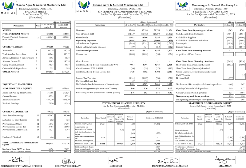 Q2 Financial Statements (Un-audited) of Monno Agro & General Machinery Ltd.
