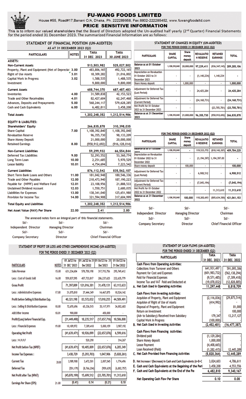 Price Sensitive Information of Fu-Wang Food Limited