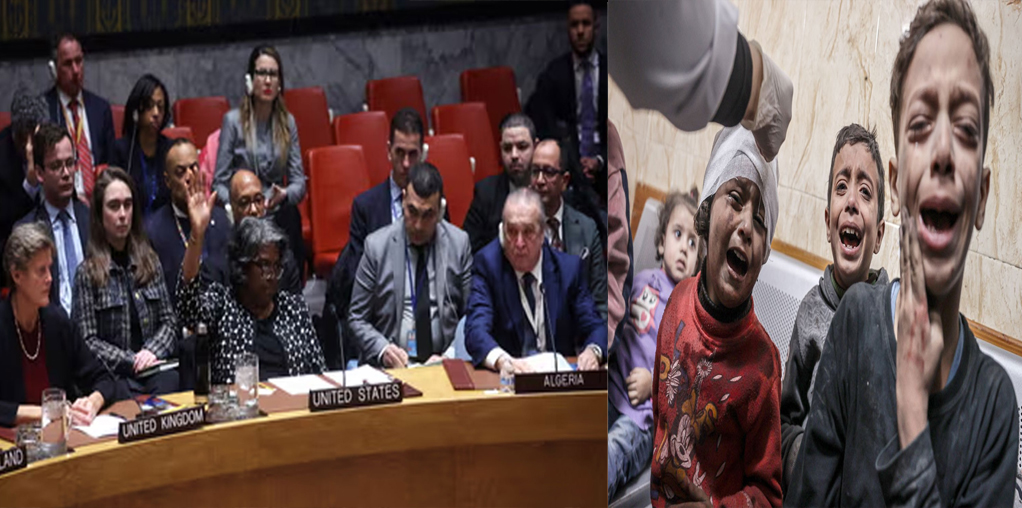 গাজায় হামাস-ইসরাইল সংঘাত বন্ধে মানবিক যুদ্ধবিরতির জন্য জাতিসংঘের নিরাপত্তা পরিষদে উত্থাপিত প্রস্তাবে আবারও ভেটো দিয়েছে যুক্তরাষ্ট্র। হামাস ও ইসরাইলের সংঘাত শুরু হওয়ার পর নিরাপত্তা পরিষদে ওঠা যুদ্ধবিরতির প্রস্তাবে এটি যুক্তরাষ্ট্রের তৃতীয় ভেটো। খবর রয়টার্স।