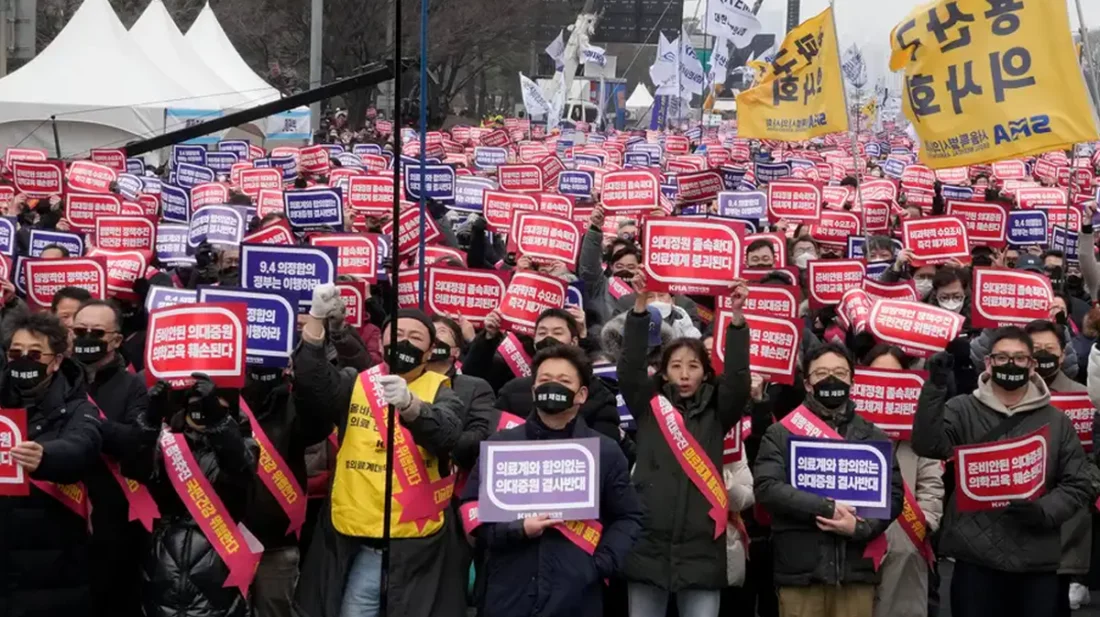 মেডিকেল ভর্তিতে আসনসংখ্যা বাড়ানোর সরকারি সিদ্ধান্তের প্রতিবাদে ধর্মঘট করছেন দক্ষিণ কোরিয়ার প্রায় ১০ হাজার জুনিয়র চিকিৎসক। কাজে ফেরার সরকারি নির্দেশের পরও যারা যোগ দেননি সোমবার থেকে তাদের লাইসেন্স স্থগিত করা শুরু করেছে সরকার।