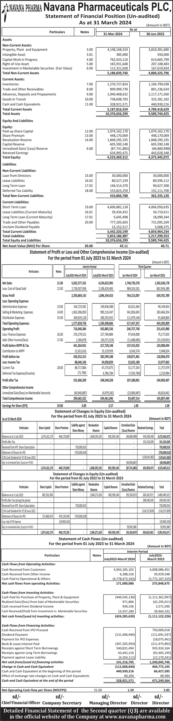 Financial Statements of Navana Pharmaceuticals PLC.