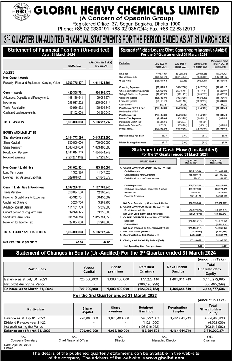 Q3 Financial Statements (Un-audited) of Global Heavy Chemicals Limited