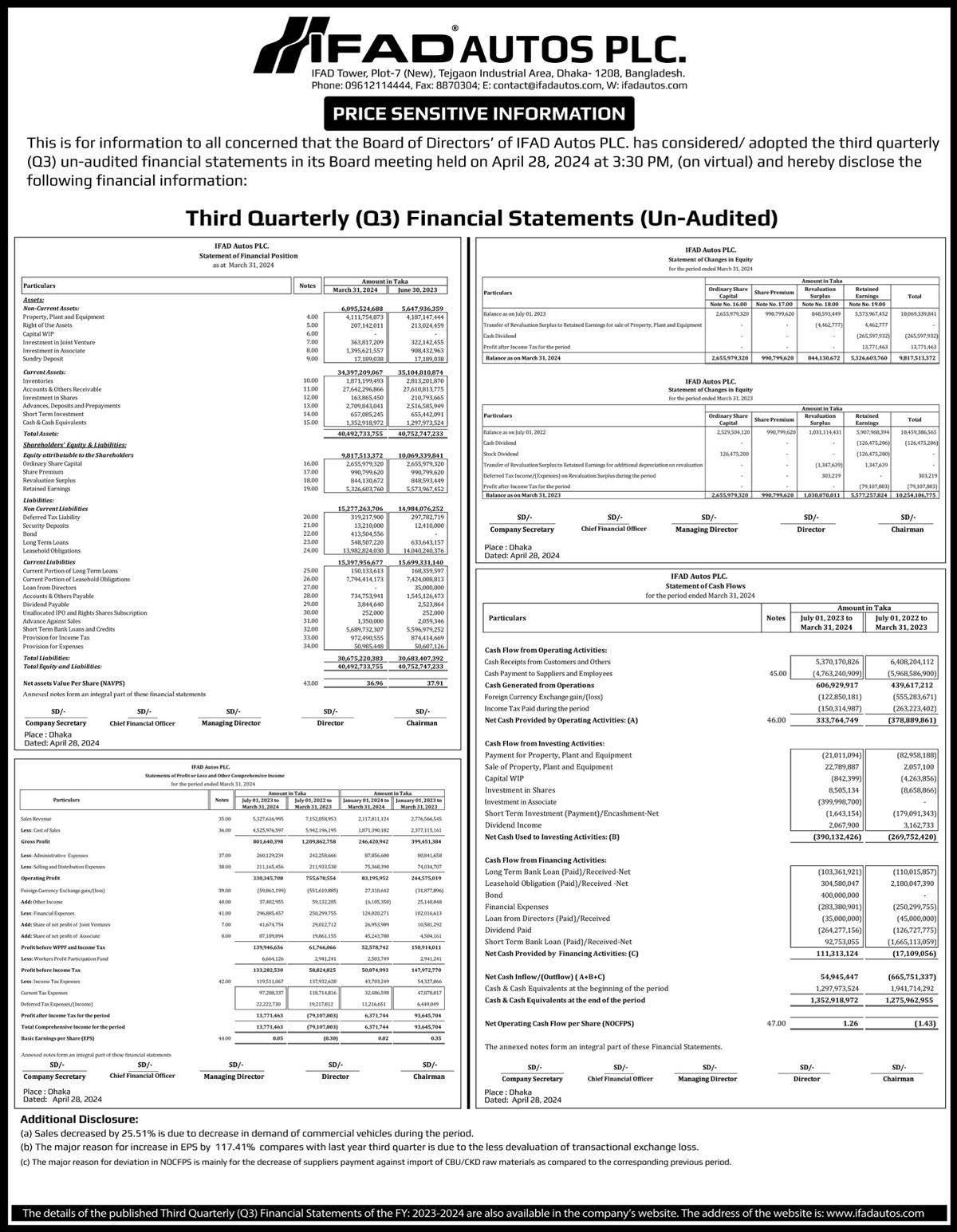 Q3 Un-audited Financial Statements of IFAD Autos PLC.