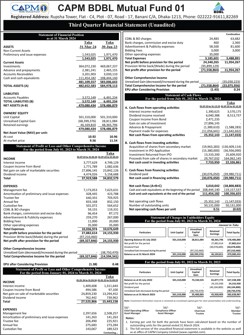 Q3 Un-audited Financial Statements of CAPM BDBL Mutual Fund 01