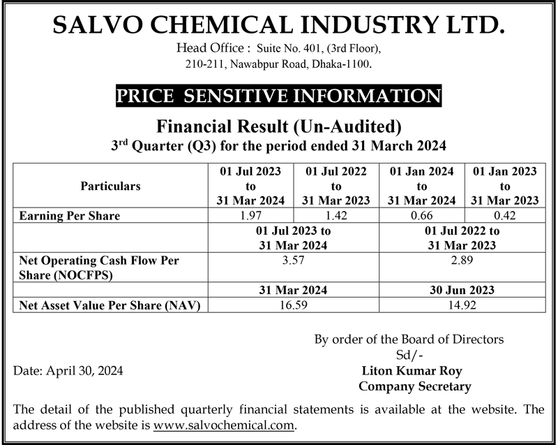 Price Sensitive Information of Salvo Chemical Industry Limited