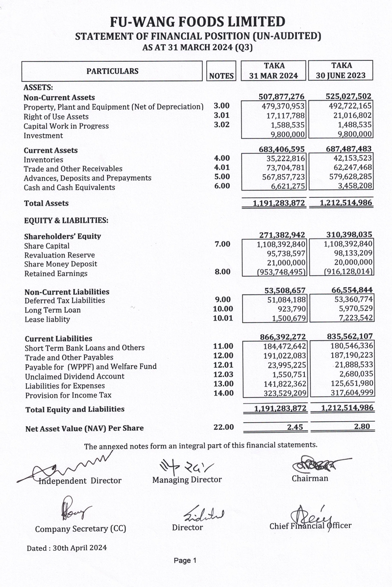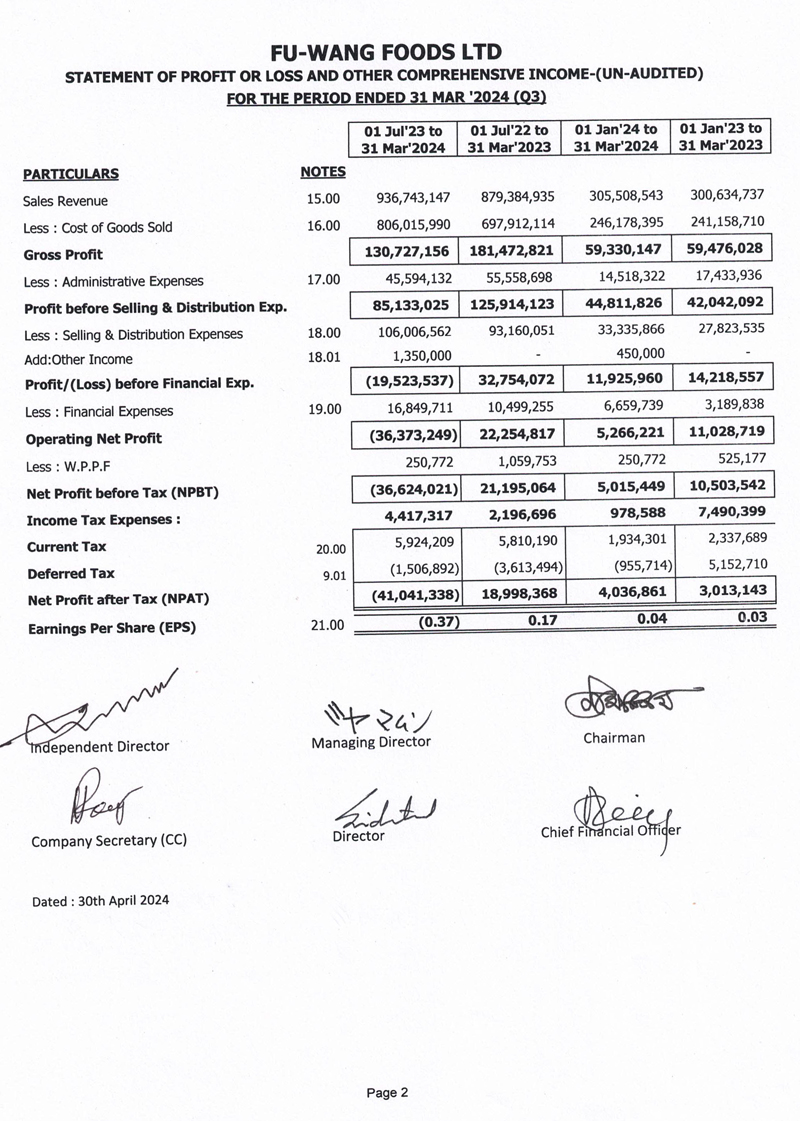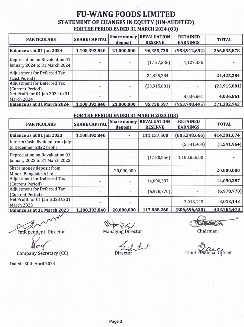 Q3 Un-audited Financial Statements of Fu-Wang Food Limited