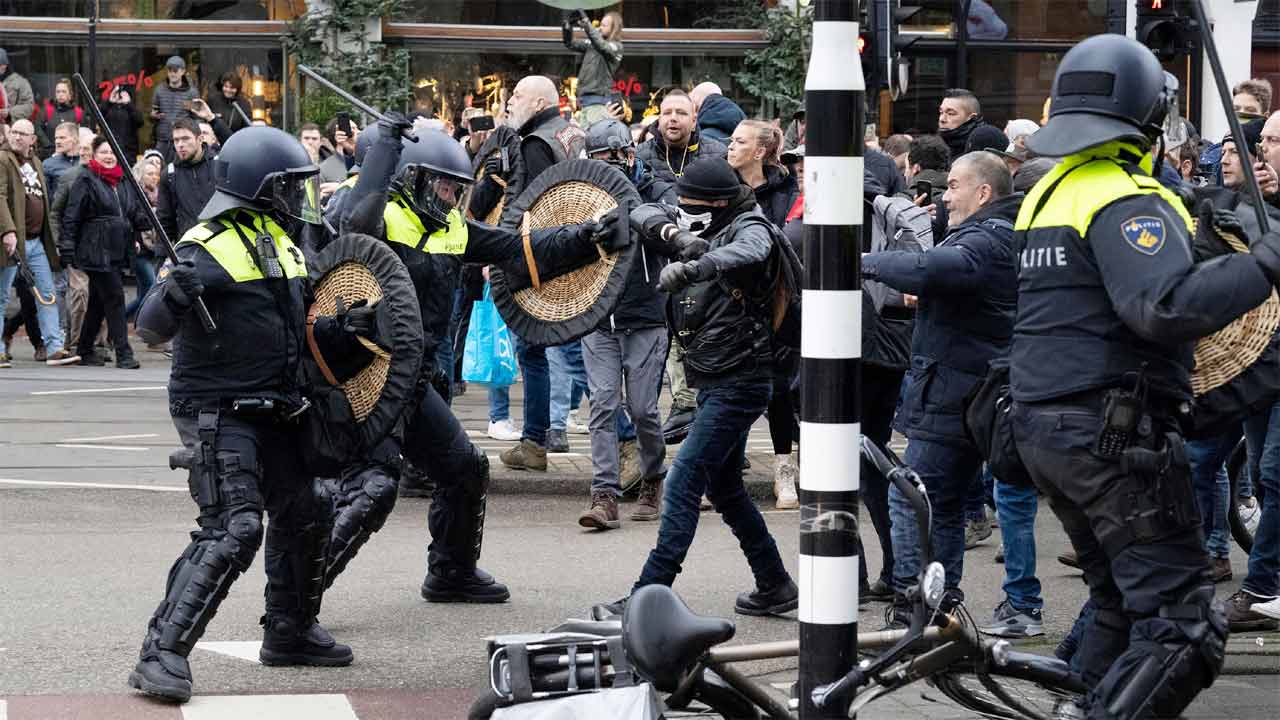 গাজায় স্থায়ী যুদ্ধবিরতি এবং ফিলিস্তিনের স্বাধীনতার দাবিতে বিক্ষোভে উত্তাল হয়ে উঠেছে নেদারল্যান্ডসের রাজধানী আমস্টারডাম। বিশৃঙ্খলা সৃষ্টির অভিযোগে মঙ্গলবার ১৬৯ জন বিক্ষোভকারীকে আটকের পাশাপাশি নিজেদের সহজাত ভূমিকার বাইরে গিয়ে ব্যাপক কঠোরতা প্রদর্শন করেছে আমস্টারডাম পুলিশ।