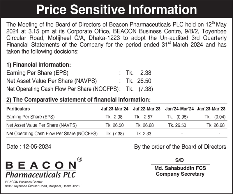 Price Sensitive Information of Beacon Pharmaceuticals PLC.