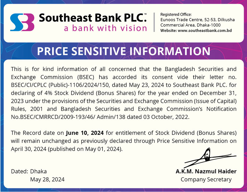 Price Sensitive Information of Southeast Bank PLC.