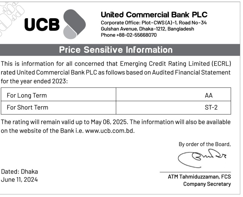 Price Sensitive Information of United Commercial Bank PLC