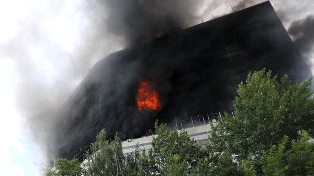 অনলাইনে ছড়িয়ে পড়া ভিডিওতে দেখা গেছে, আটতলা কমপ্লেক্সের উপরতলা থেকে ঘন ধোঁয়া বের হচ্ছে। ভবনটিতে একসময় প্লাটান রিসার্চ ইনস্টিটিউট এবং প্রতিরক্ষা শিল্প ছিল বলে জানিয়েছে তাস।