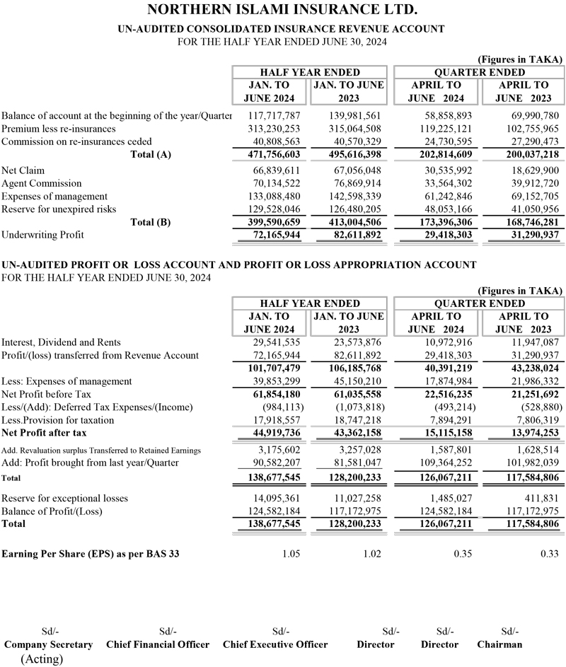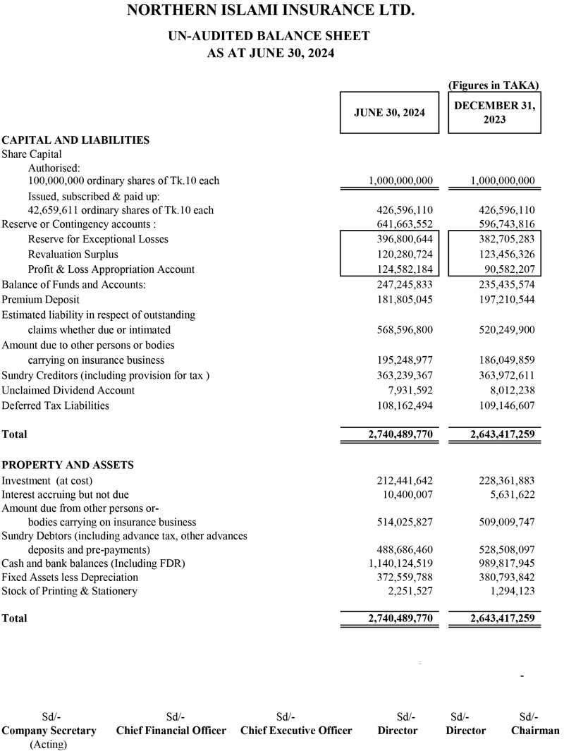 Q2 Un-audited Financial Statements of Northern Islami Insurance Ltd.