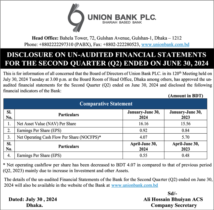 Q2 Un-audited Financial Statements of Union Bank PLC