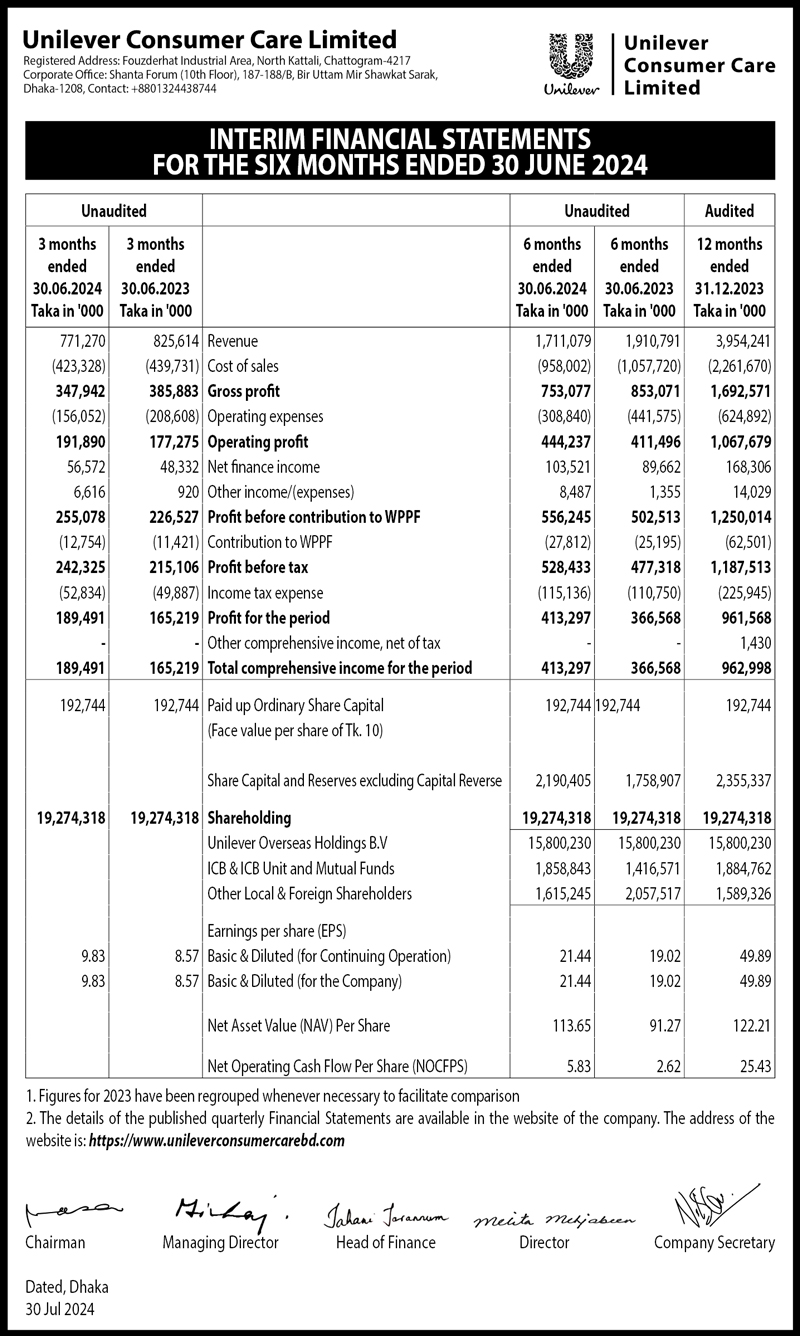 interim financial statements Unilever Consumer Care Limited