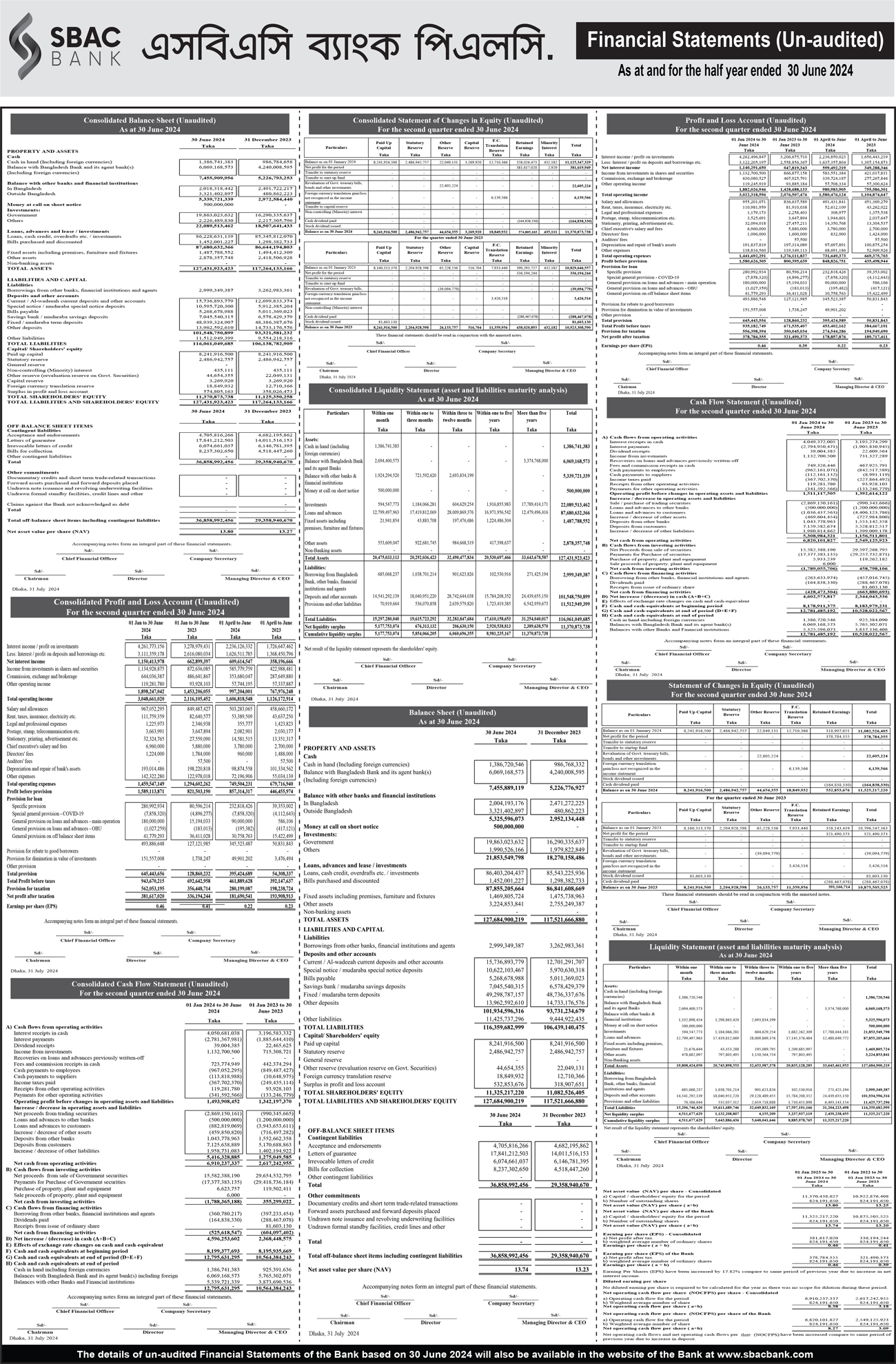 Half Yearly Un-audited Financial Statements of SBAC Bank PLC
