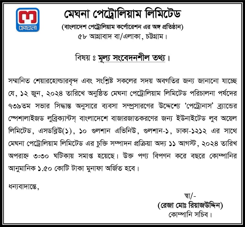 Price Sensitive Information of Meghna Petroleum Limited