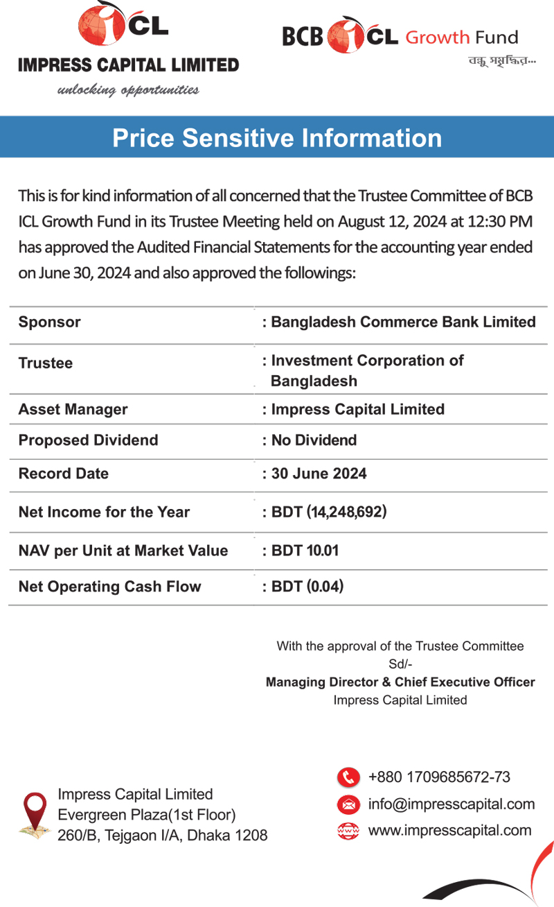 Price Sensitive Information of BCB ICL Growth Fund