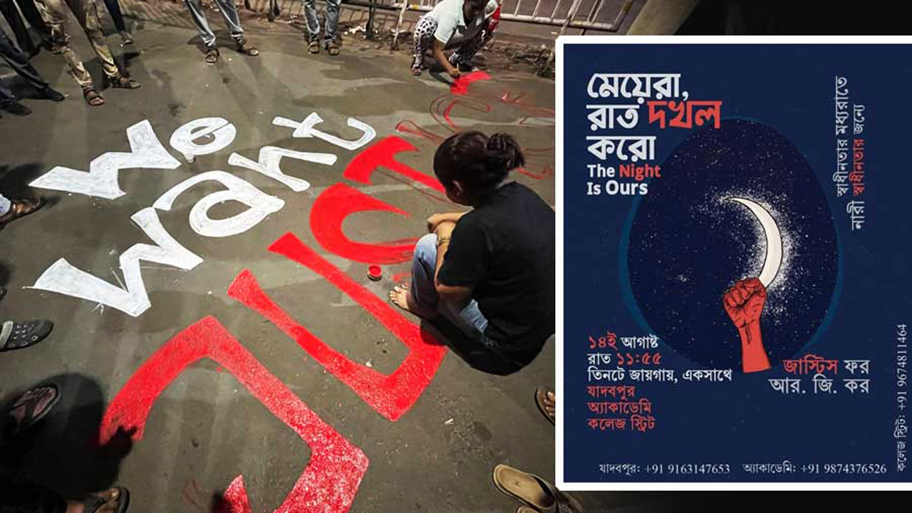 আরজি কর হাসপাতালে নারী চিকিৎসককে ধর্ষণ ও খুনের ঘটনার প্রতিবাদ জানাতে প্রথম যে পোস্টারটি সামাজিক যোগাযোগ মাধ্যমে ছড়িয়ে পড়ে তাতে ১৪ আগস্ট (বুধবার) রাত ১১টা ৫৫ মিনিট থেকে মেয়েদের রাস্তায় নামার আহ্বান জানানো হয়েছিল। কিন্তু সোমবার রাত থেকেই সেটি অন্য মাত্রা পেতে শুরু করে। মঙ্গলবার তা পুরো পশ্চিমবঙ্গে ছড়িয়ে পড়েছে।