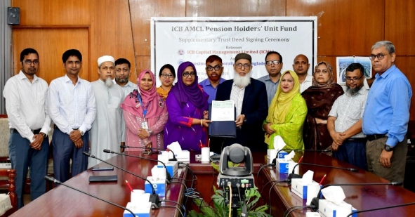 আইসিবি এএমসিএল পেনশন হোল্ডার্স ইউনিট ফান্ডের বিনিয়োগকারীদের উপযুক্ততার আওতা বৃদ্ধির লক্ষ্যে ইনভেস্টমেন্ট কর্পোরেশন অফ বাংলাদেশ (আইসিবি) এবং আইসিবি ক্যাপিটাল ম্যানেজমেন্ট লিমিটেডের মধ্যে একটি সম্পূরক ট্রাস্ট দলিল স্বাক্ষর অনুষ্ঠান অনুষ্ঠিত হয়েছে।