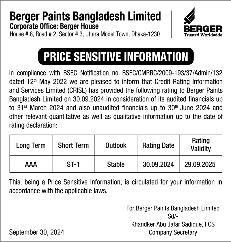 Price Sensitive Information of Berger Paints Bangladesh Limited