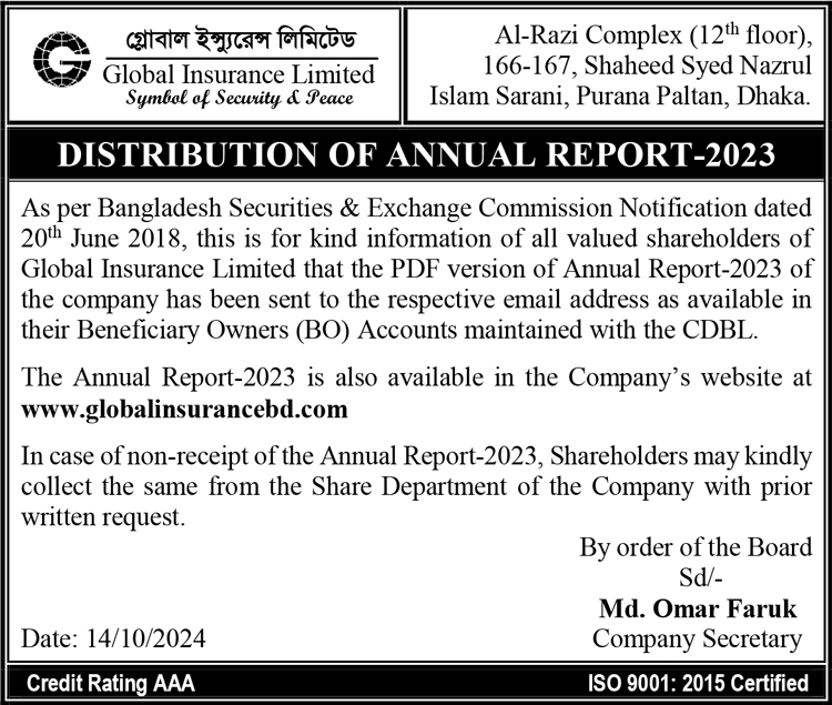Distribution of Annual Report of Global Insurance Limited