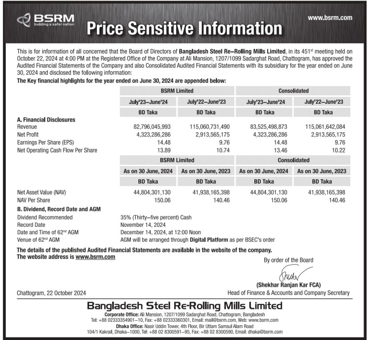 Price Sensitive Information of Bangladesh Steel Re-Rolling Mills Limited
