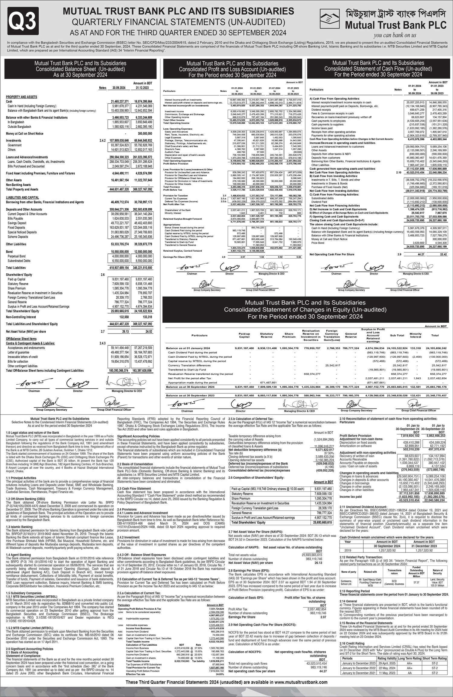 Q3 Un-audited Financial Statements of Mutual Trust Bank PLC and its Subsidiaries
