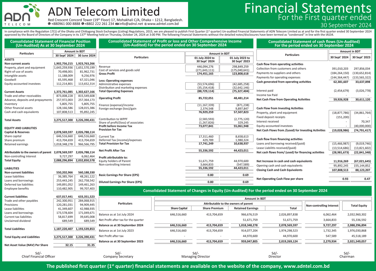 Financial Statemente of ADN Telecom Limited