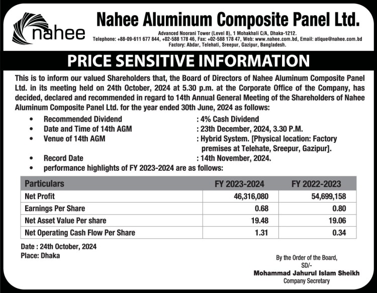 Price Sensitive Information of Nahee Aluminum Composite Panel Ltd
