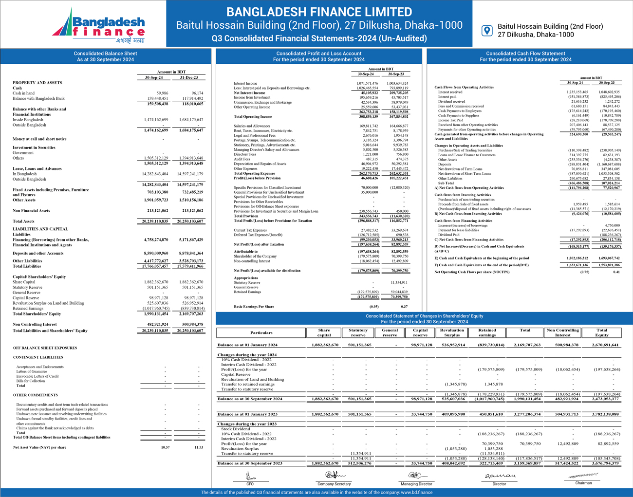 Q3 Un-audited Financial Statements of Bangladesh Finance Limited