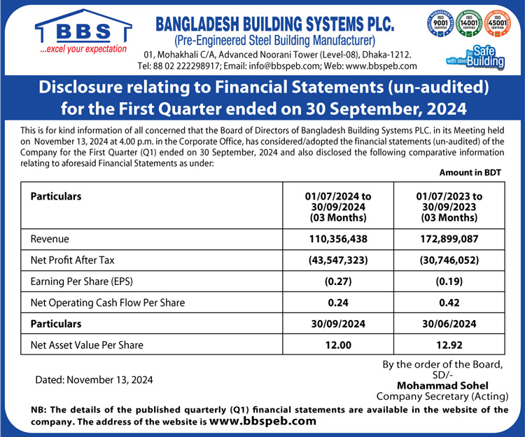 Price Sensitive Information of Bangladesh Building Systems PLC