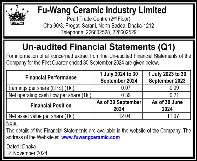Un-audited Financial Statements (Q1) of Fu-Wang Ceramic Industry Limited