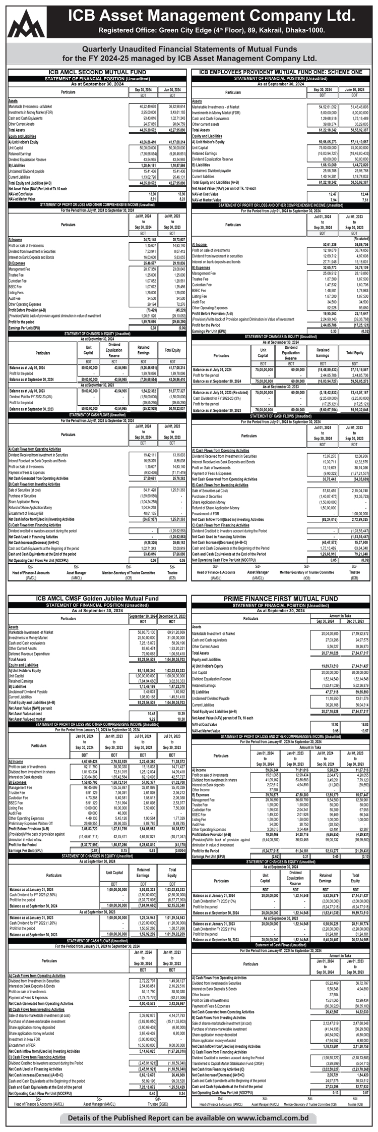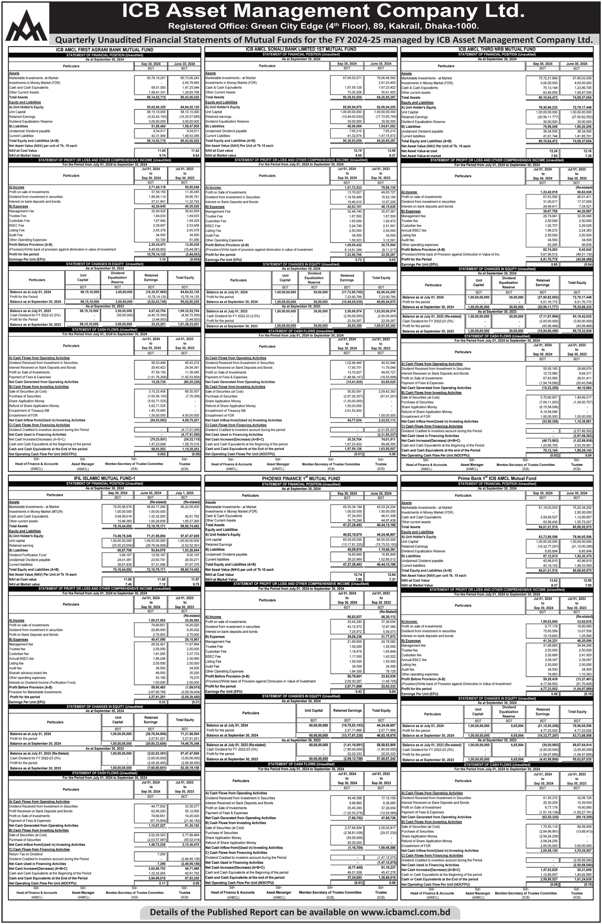 Quarterly Unaudited Financial Statement of Mutual Fund managed by ICB Asset Management Company Ltd.