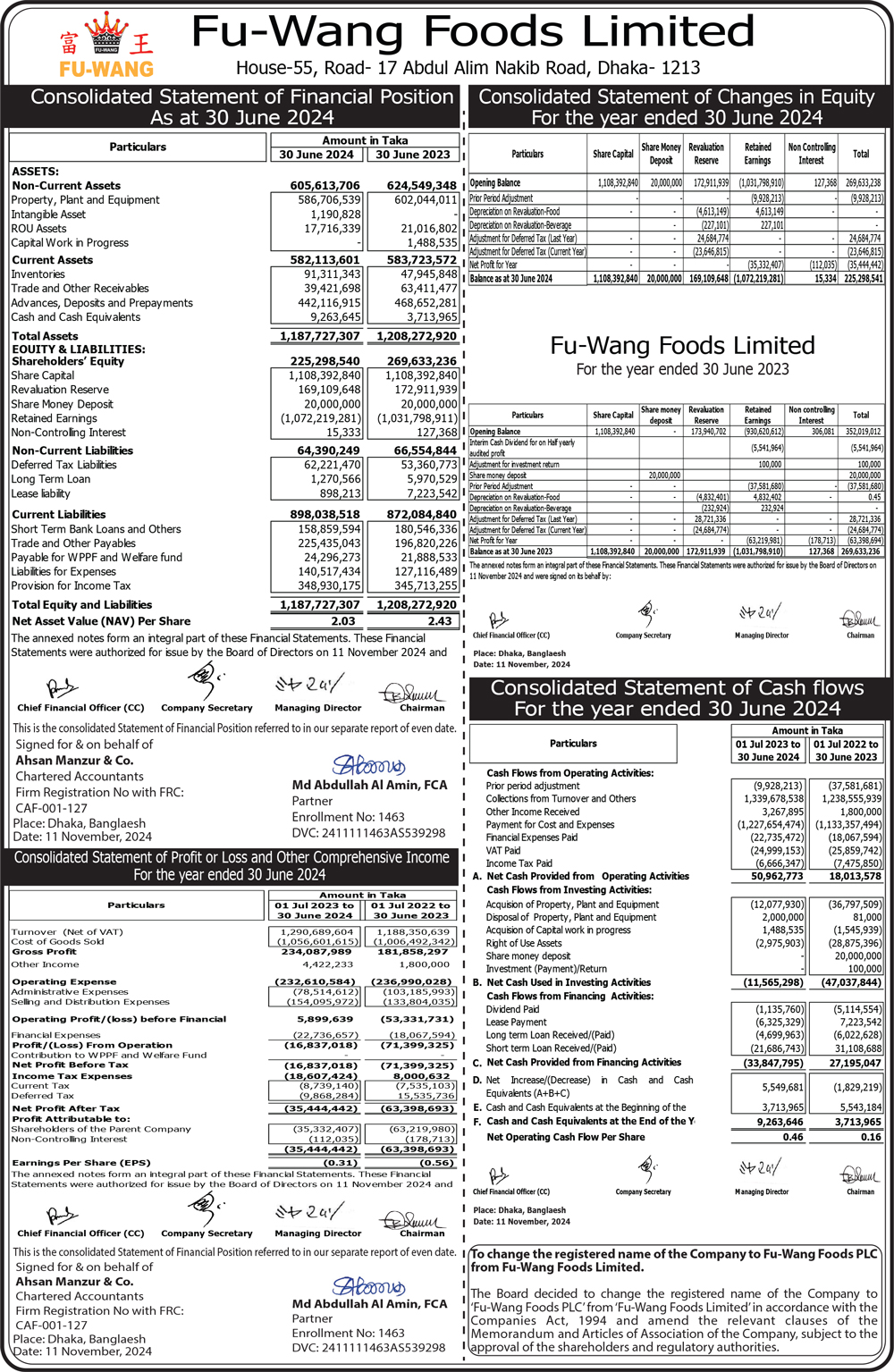 Consolidated Statements of Financial Position of Fu-Wang Foods Limited