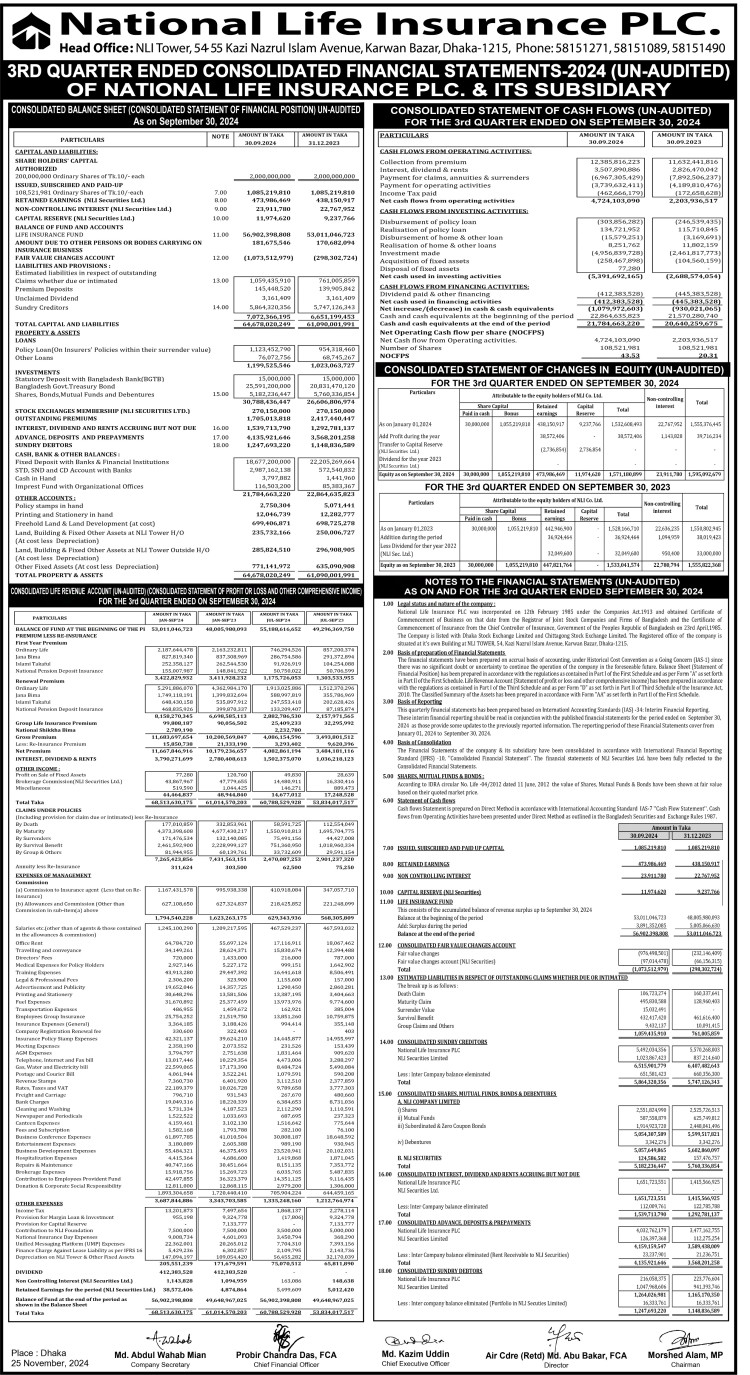 Q3 Financial Statement of National Life Insurance PLC