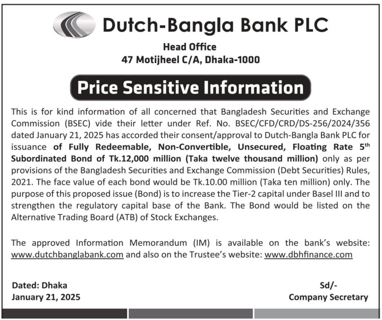 Price Sensitive Information of Dutch-Bangla Bank PLC