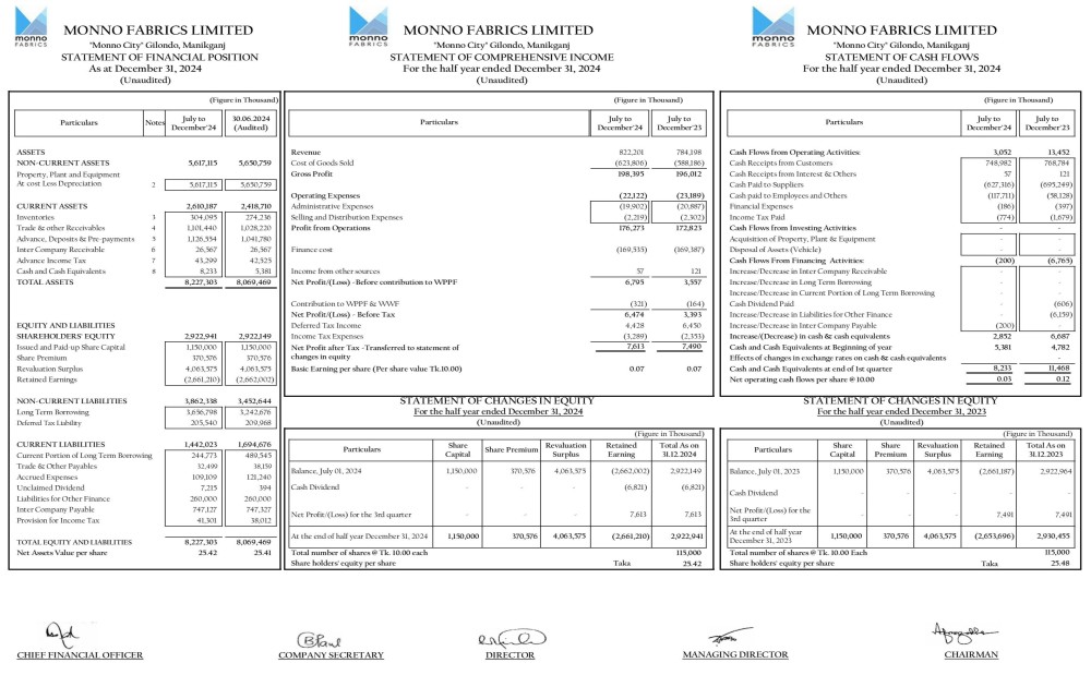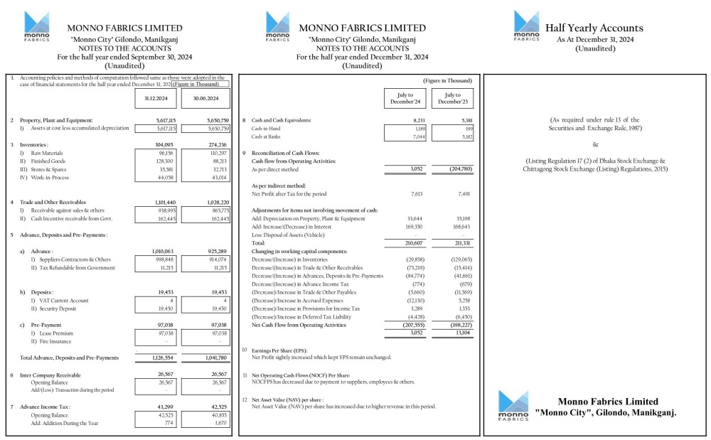 Half Yearly Financial Statement (Un-audited) of Monno Fabrics Ltd.