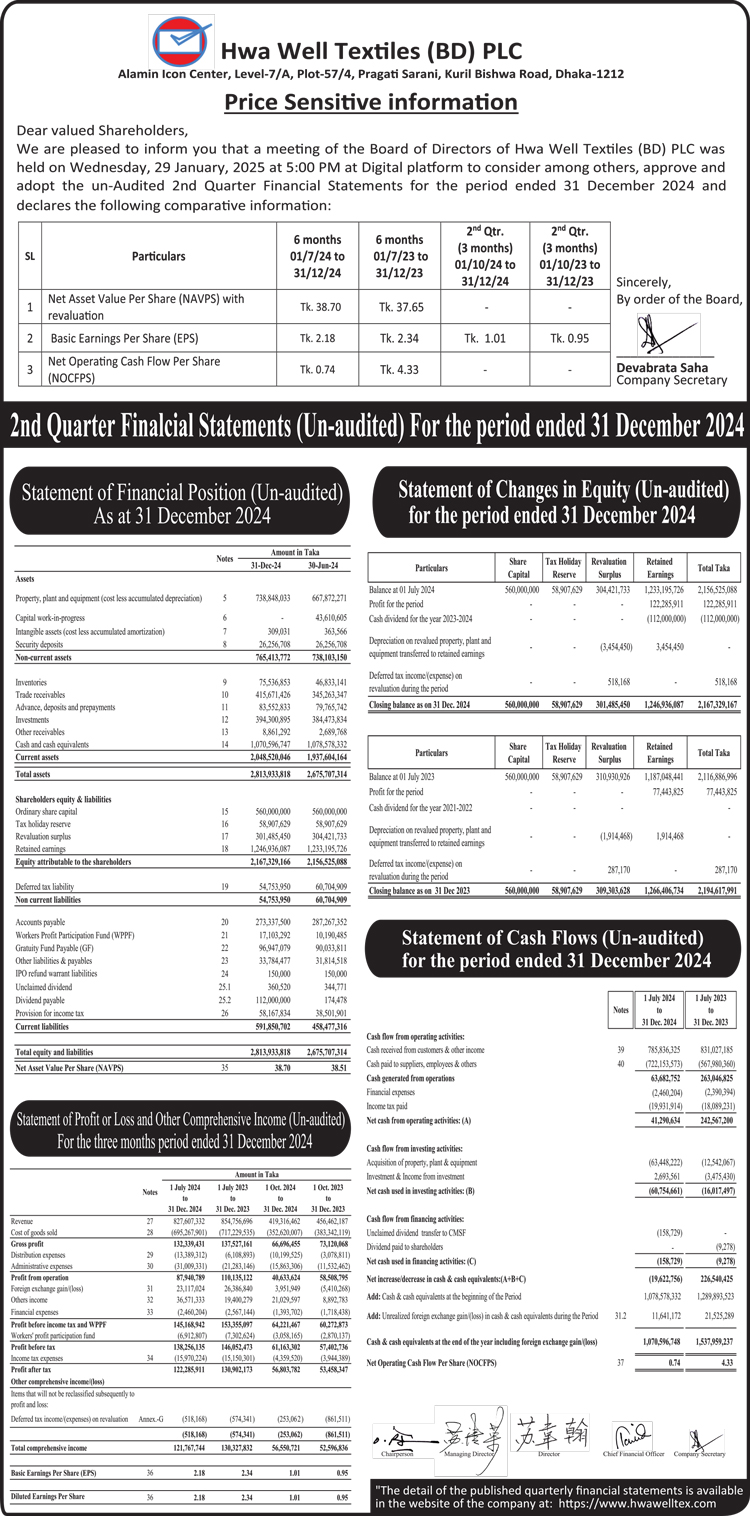 Price Sensitive Information of Hwa Well Textiles (BD) Limited