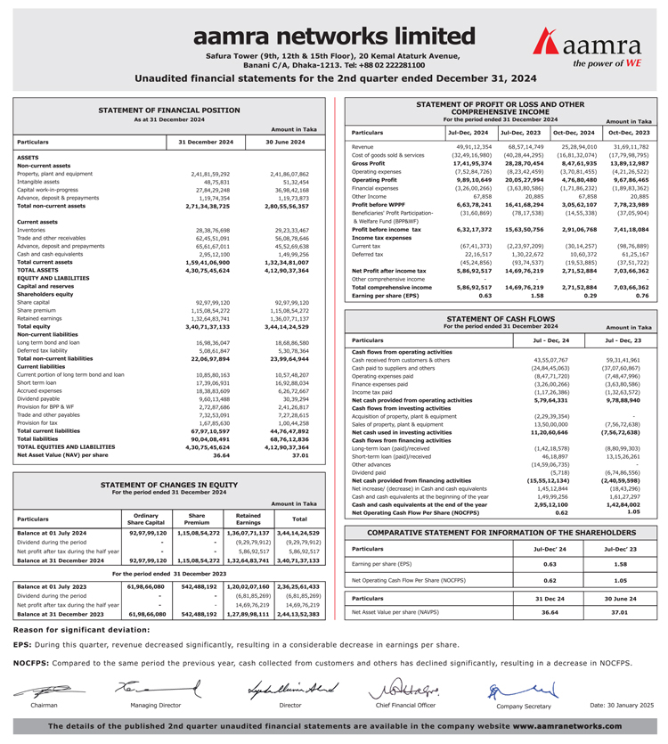Q2 Un-audited Financial Statements of aamra networks limited