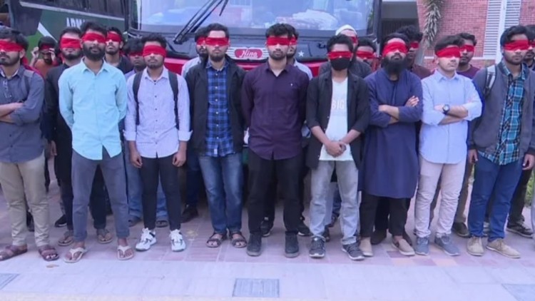 খুলনা প্রকৌশল ও প্রযুক্তি বিশ্ববিদ্যালয়ের (কুয়েট) উপাচার্য, উপ-উপাচার্যকে অপসারণ এবং নতুন নিয়োগসহ ৬ দফা দাবিতে প্রধান উপদেষ্টার সঙ্গে দেখা করার সিদ্ধান্ত নিয়েছে শিক্ষার্থীরা। রোববার (২৩ ফেব্রুয়ারি) সকাল ৮টায় দুটি বাসে ৮০ শিক্ষার্থী ঢাকায় রওনা দিয়েছে। এ সময় শিক্ষার্থীদের মাথা ও চোখে লাল কাপড় বাঁধা ছিল।