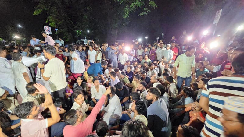 কখনো টানা আবার কখনো কিছুটা বিরতি দিয়ে যমুনার সামনে স্লোগান দিয়ে যাচ্ছেন এনসিপির নেতাকর্মীরা। সেখানে বৃহস্পতিবার রাত ২টার দিকে সংক্ষিপ্ত বক্তব্যে দলটির আহ্বায়ক নাহিদ ইসলাম বলেন, অন্তর্বর্তী সরকারের প্রথম দায়িত্ব ছিল আওয়ামী লীগকে নিষিদ্ধ করা। আমরা সরকারের বাইরে এবং ভেতরে সেই দাবি বলেছি। কিন্তু আজকে নয় মাস পরেও আওয়ামী লীগকে নিষিদ্ধের জন্য আমাদের আবার রাজপথে নামতে হয়েছে।