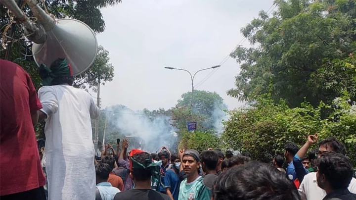 আবাসন ভাতা, প্রস্তাবিত পূর্ণাঙ্গ বাজেট অনুমোদনসহ তিন দফা দাবিতে প্রধান উপদেষ্টার বাসভবন যমুনার উদ্দেশে জগন্নাথ বিশ্ববিদ্যালয়ের (জবি) শিক্ষার্থীদের লংমার্চ কর্মসূচিতে টিয়ারগ্যাস ও সাউণ্ড গ্রেনেড নিক্ষেপ করেছে পুলিশ। এতে এখন পর্যন্ত ৬ আহত হয়েছেন বলে জানা গেছে। আর টিয়ারসেল, সাউন্ড গ্রেনেড ও পুলিশের ধাওয়ায় শিক্ষার্থীদের লংমার্চ ছত্রভঙ্গ হয়ে যায়।
