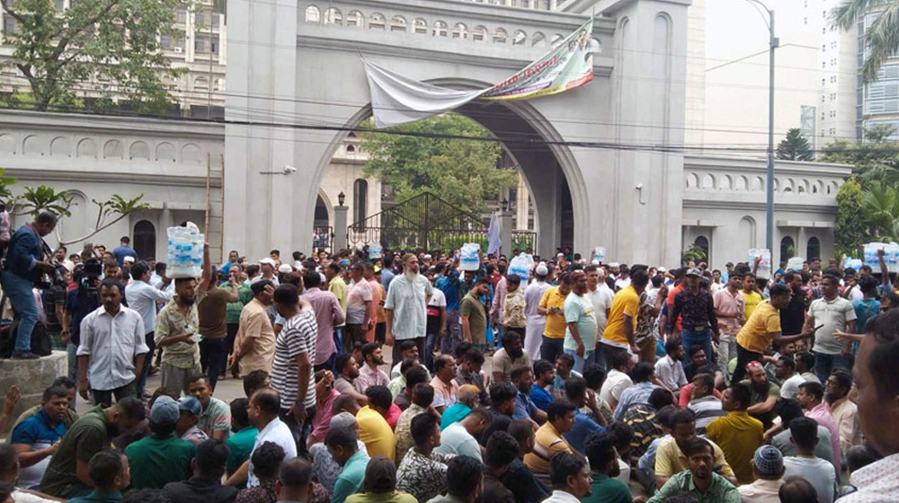 ঢাকা দক্ষিণ সিটি কর্পোরেশনের বিভিন্ন এলাকা থেকে ছোট ছোট মিছিল নিয়ে এসে তারা নগরভবনের সামনে জড়ো হচ্ছেন। বাইরে অবস্থান নিয়ে ইশরাক হোসেনের শপথ গ্রহণে বিলম্বের প্রতিবাদ জানাচ্ছেন তারা। এ সময় ‘শপথ শপথ চাই, ইশরাক ভাইয়ের শপথ চাই’, ‘শপথ নিয়ে তালবাহানা চলবে না চলবে না’, ‘অবিলম্বে ইশরাক হোসেনের শপথ চাই, দিতে হবে’, ‘জনতার মেয়র ইশরাক ভাই, অন্য কোনো মেয়র নাই’ সহ বিভিন্ন স্লোগান দিতে দেখা গেছে।