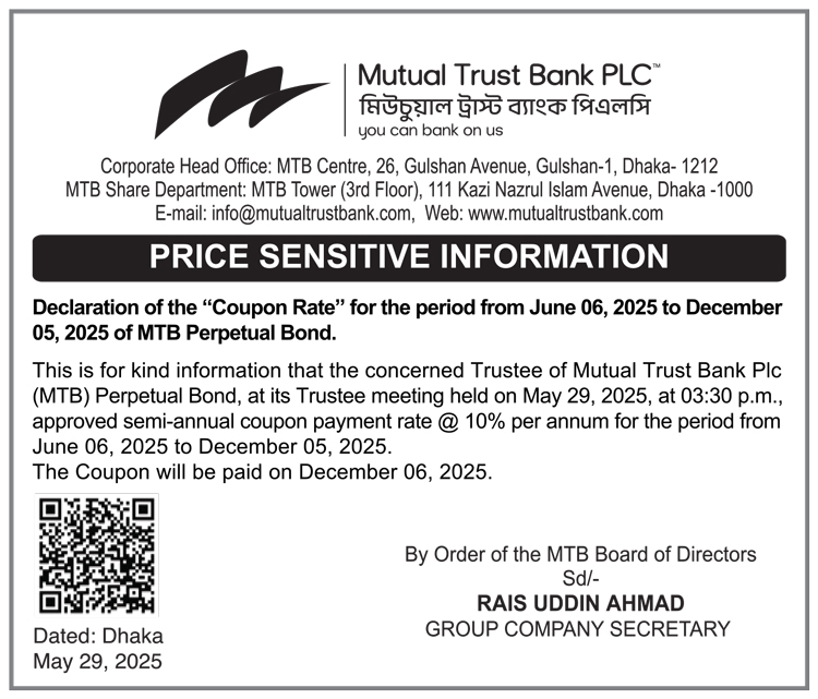 Price Sensitive Information of Mutual Trust Bank PLC.