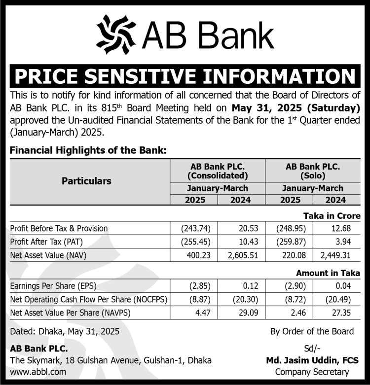 Price Sensitive Information of AB Bank