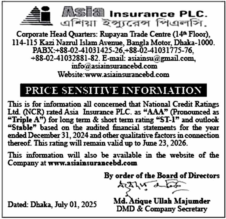 Price Sensitive Information of Asia Insurance PLC.