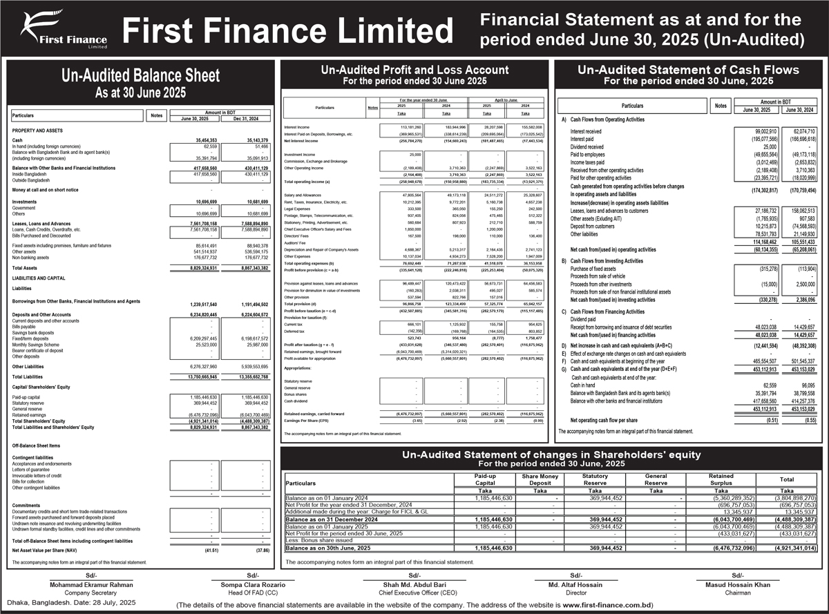 Un-audited Financial Statements of First Finance Limited