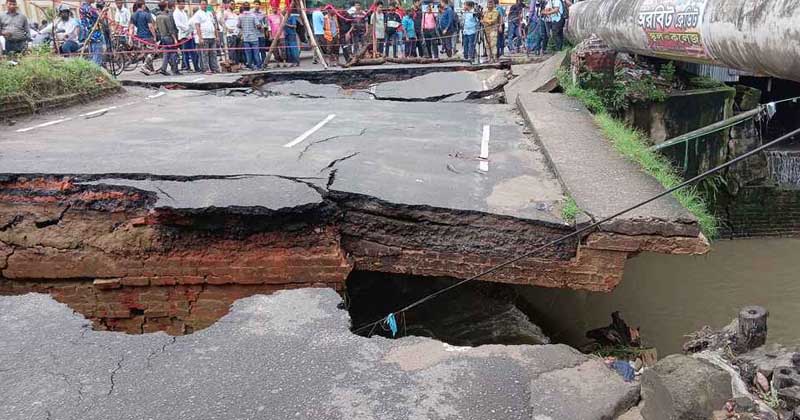 চট্টগ্রামে রাতভর বৃষ্টিতে নগরীর অক্সিজেন ২ নম্বর গেইট সড়কের স্টারশিপ এলাকায় ব্রিজ ভেঙে সড়কের একপাশে যানবাহন চলাচল বন্ধ হয়ে গেছে।
